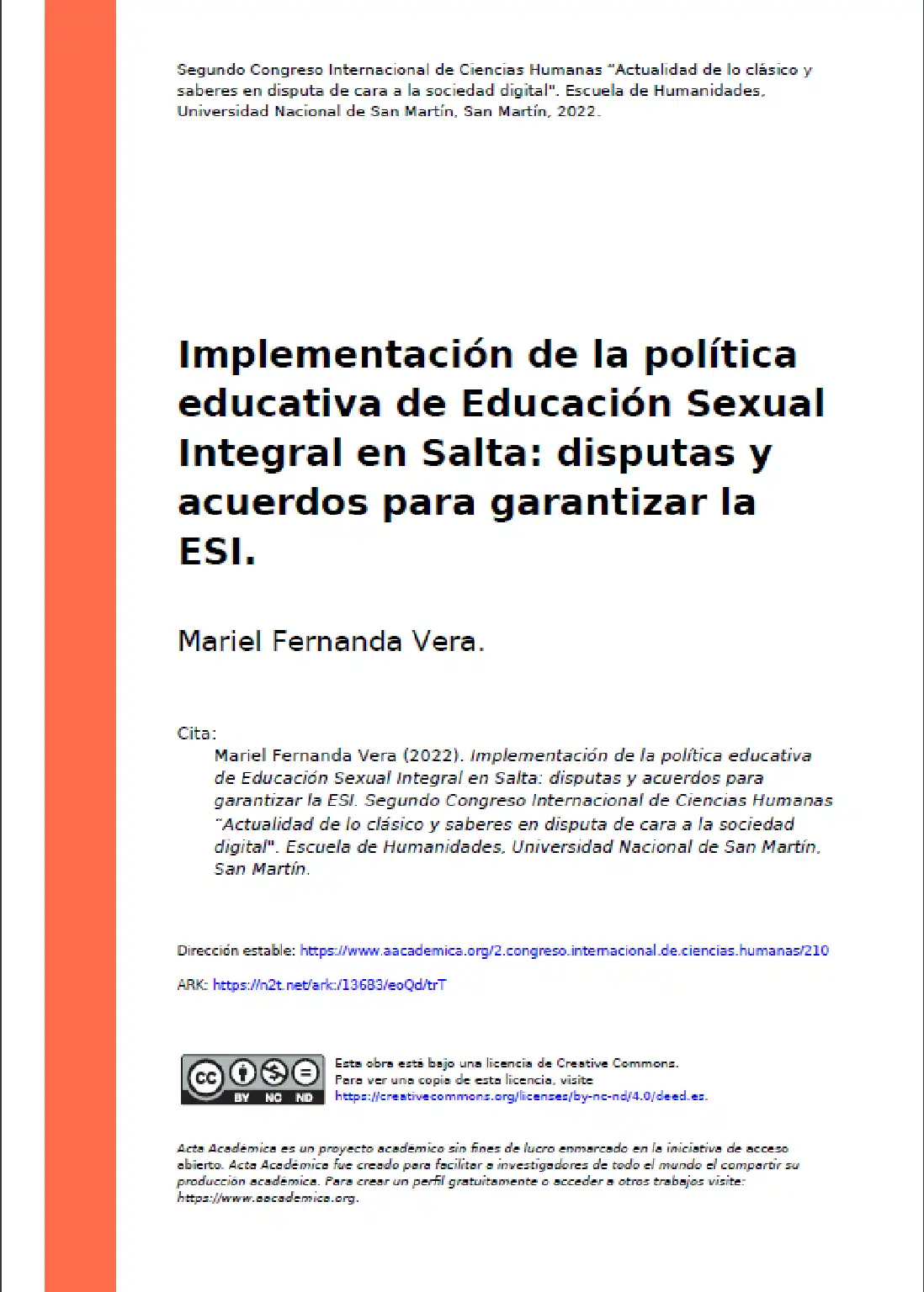 Salta fue una de las últimas provincias en implementar la ley de Educación Sexual Integral, muchos fueron los gestos en torno a la disconformidad de su implementación y en 2009 el Ministerio de Educación devolvió a Nación las cartillas y materiales de la ESI. En simultáneo se señalaba que dicha Ley es ideología de género y promueve, la iniciación temprana de la sexualidad corrompiendo la inocencia de las infancias.